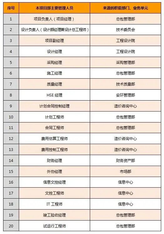 項(xiàng)目部管理人員來自于各職能部門,具體來源如圖所示:
