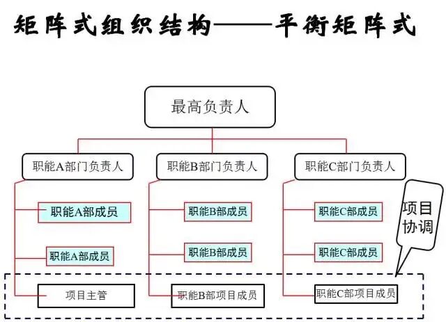 矩陣型則在職能型和矩陣型之間取得了一個(gè)平衡。